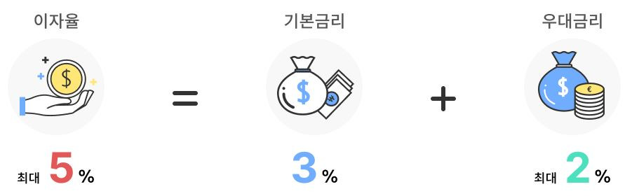우대금리 : 급여, 카드 등 은행의 거래에 따라 받을 수 있는 금리(기업,하나은행 항목 상이)